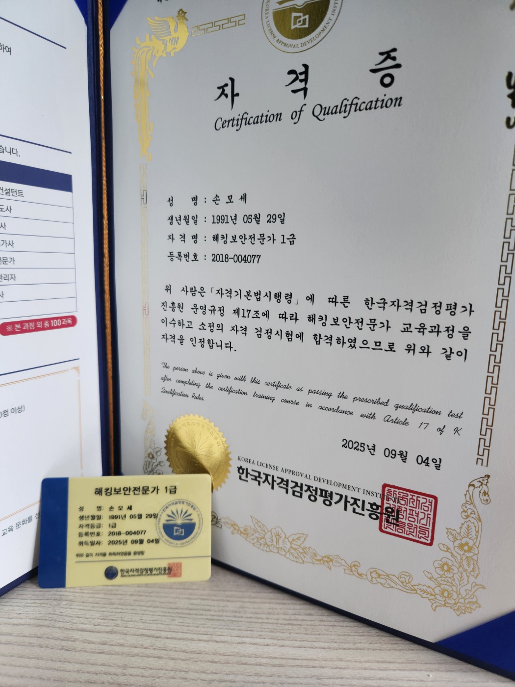 보안과제 수업을 듣기전 비전공자인 저는 낯선 용어와 개념에 조금더 빨리 적응하기 위해 이과정을 신청해 수강하고 자격증을 취득했는데 덕분에 많은 도움을 받았습니다.