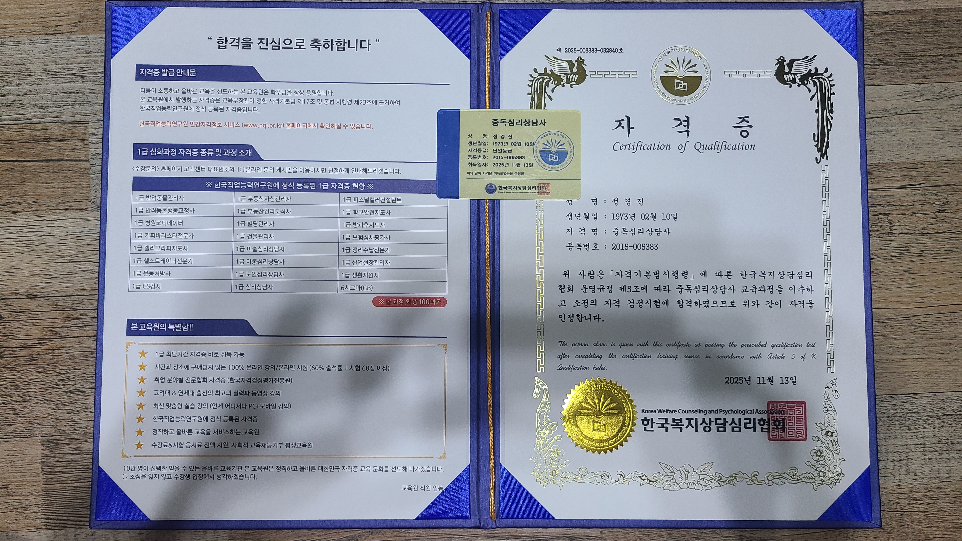 중독심리상담사 자격증 취득 관련 자격증 이제 다공부해보려고요.