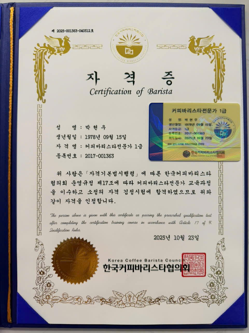 커피바리스타전문가 1급