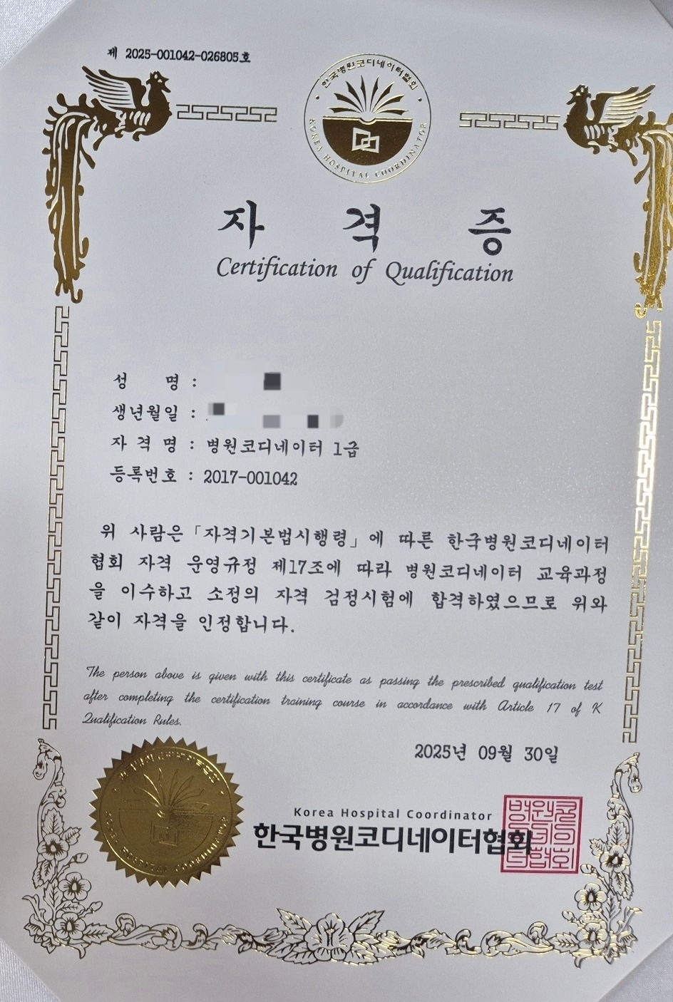 요즘처럼 경쟁이 치열하고 세분화된 사회에서, 전문직인 본업외에도 그 가치와 영역을 넓히기 위하여 쉬는 기간동안 마음먹고 시작한 '심리상담사' 과정인데 막상 합격을 하고 또 엄청 고급스런 자격증을 받고보니 마음이 뿌듯합니다. 벌써부터 상담책상에 앉아 환자와 고객을 대하는 저의 모습이 보이는 것 같고요 수고하신 강사님께 감사의 말씀을 올립니다.^^