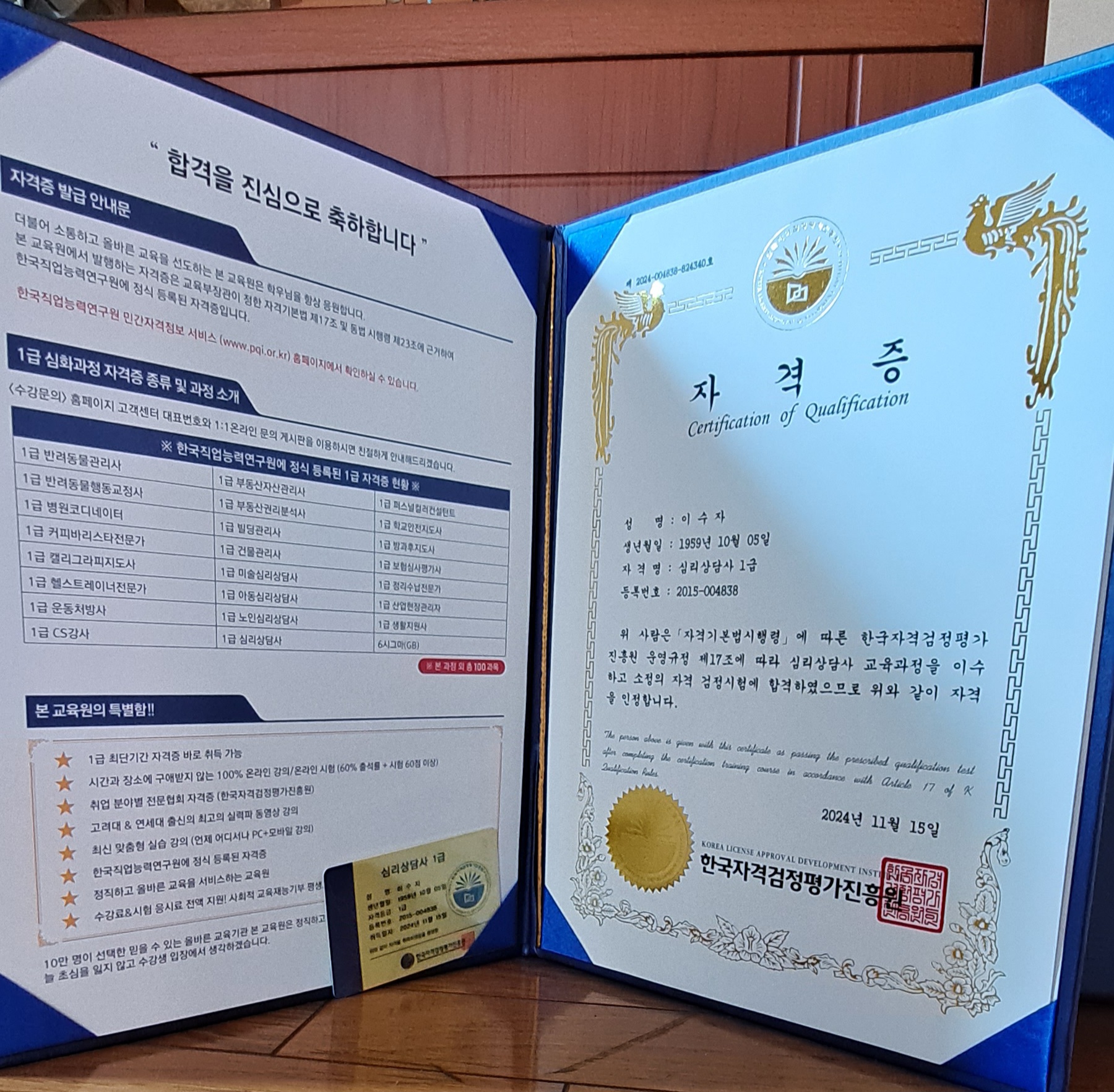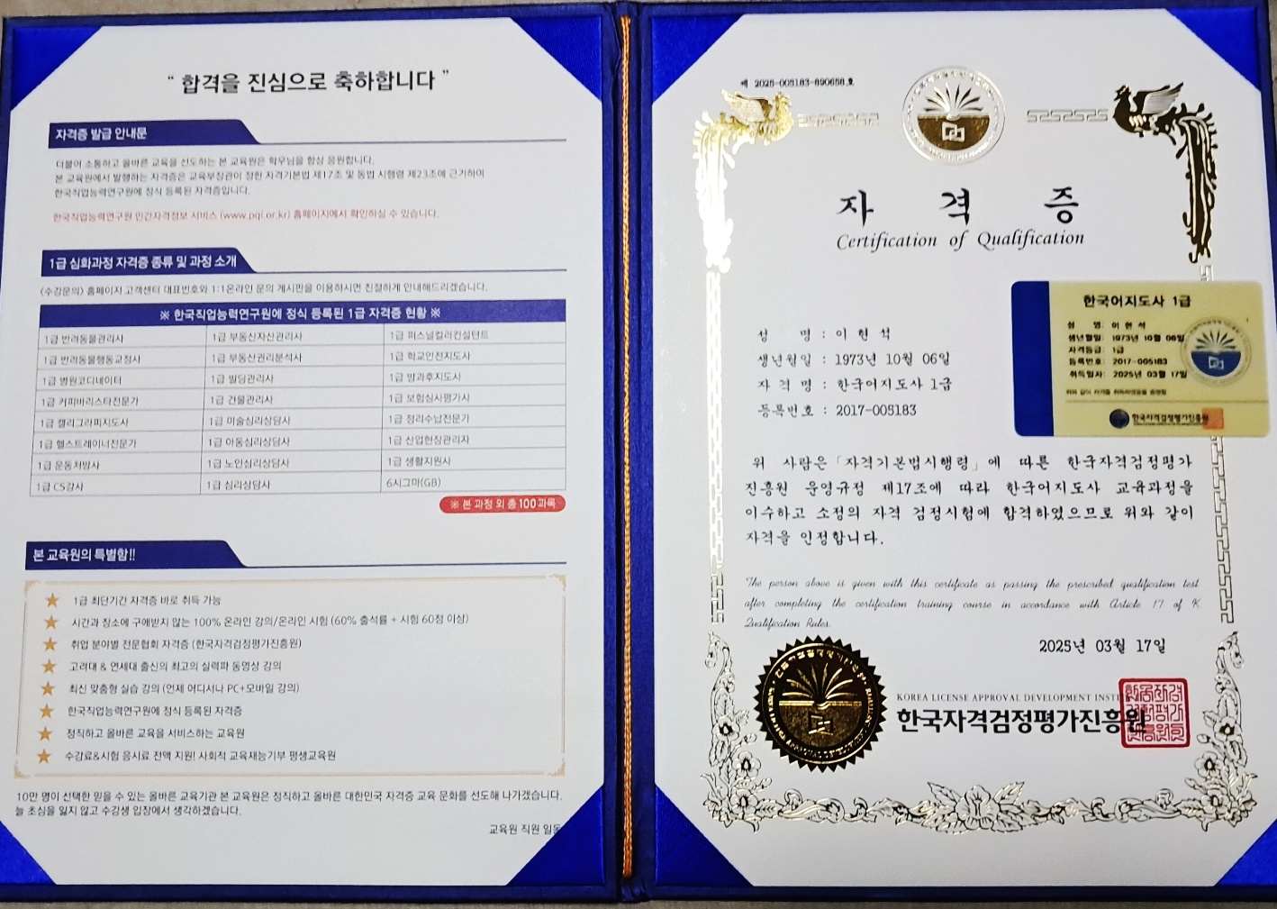 빠른 취득 과정과 수준 높은 강의!