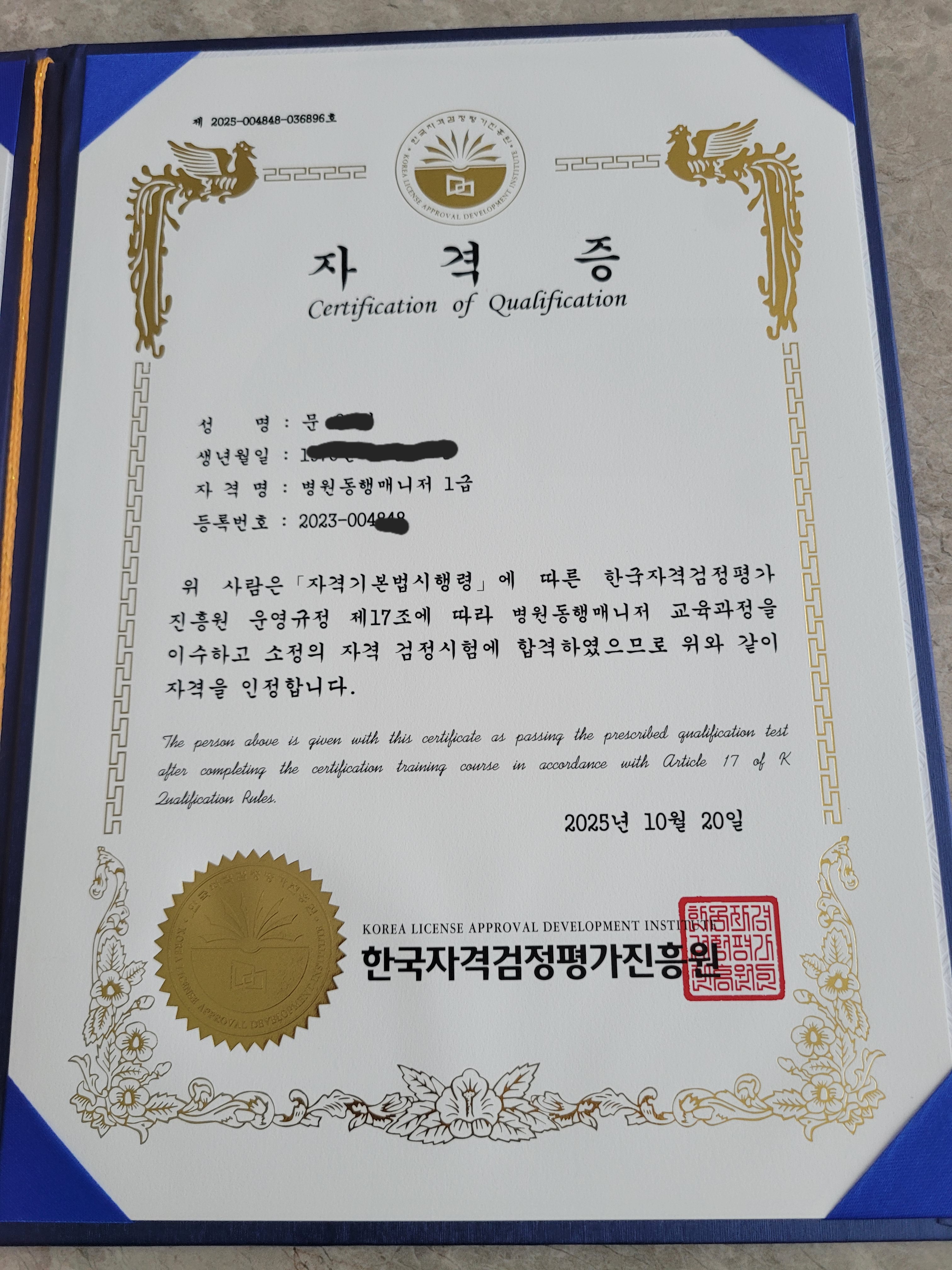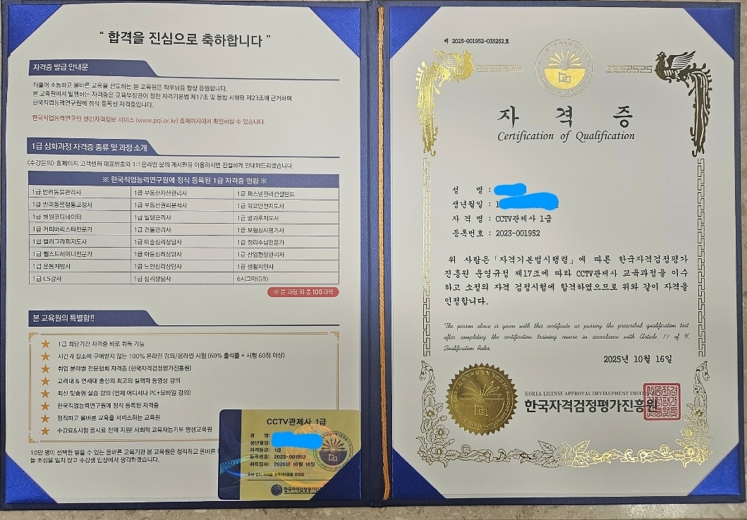 오랜 직장생활을 그만두고 시간적 여유가 되어 자격증 취득 과정중 빠르고 간단한 자격증인증협회의 다양한 과정 참 좋네요. 다른 자격증도 현재 수강중 입니다.